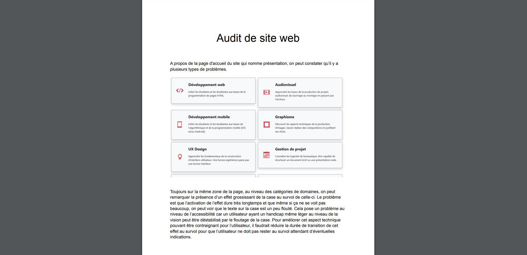 Lycée Evariste Galois - Beaumont-sur-OiseAudit répertoriant les différents problèmes d'accessibilité numérique et les solutions afin d'optimiser le site web dans le cadre d'un devoir en Intégration web.